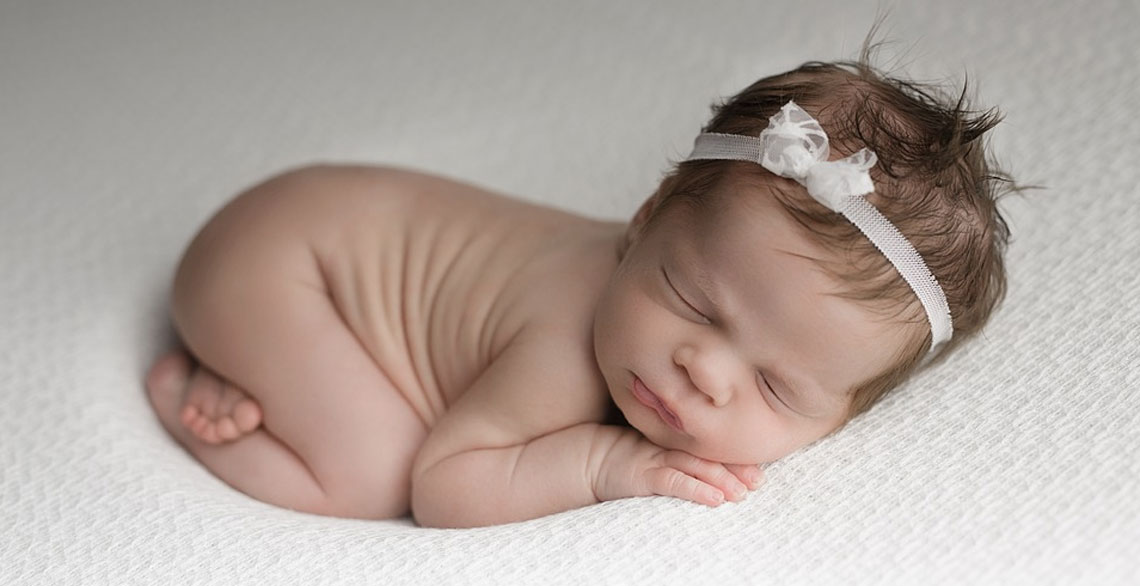Sie sehen ein kleines zartes Baby schlafend auf einer Matratze mit ausreichender Dicke